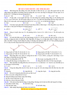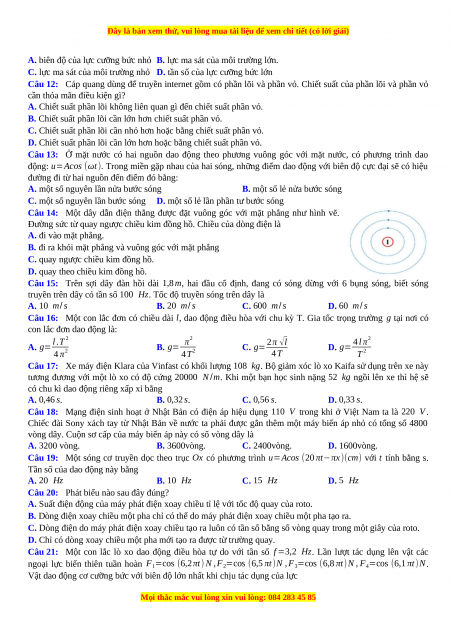 Câu 13: Ở mặt nước có hai nguồn dao động theo phương vuông góc với mặt nước, có phương trình dao