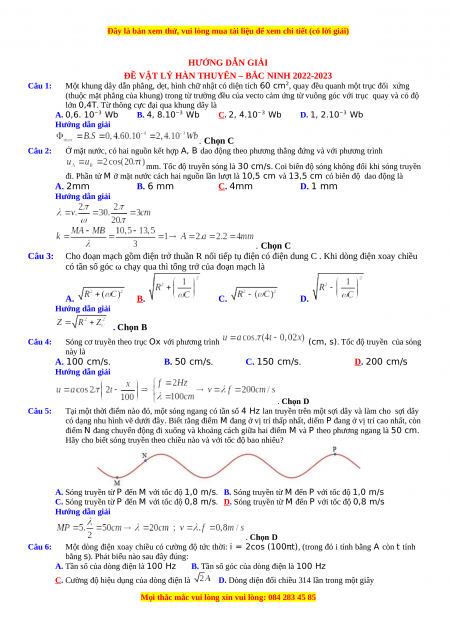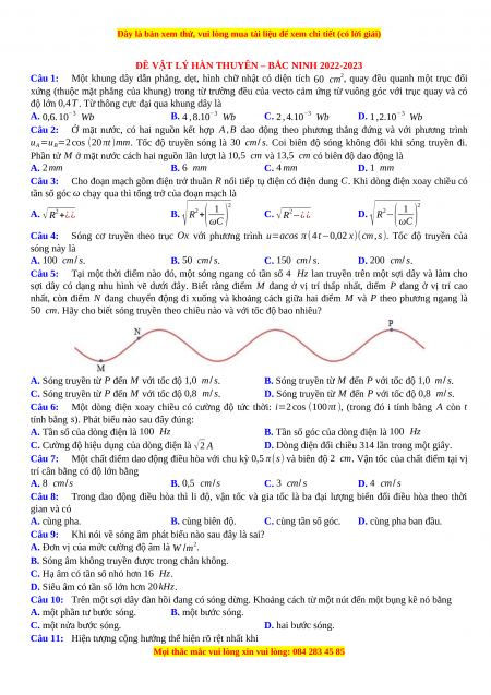 ĐỀ VẬT LÝ HÀN THUYÊN – BẮC NINH 2022-2023 Câu 1: