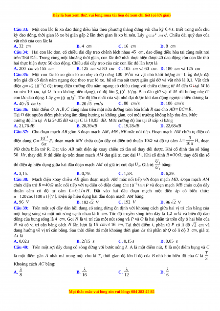 Câu 40: Trên một sợi dây đang có sóng dừng với bước sóng