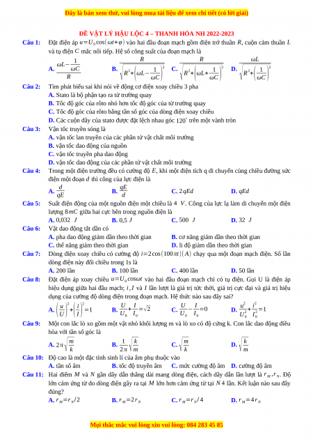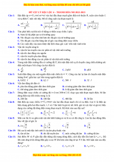 ĐỀ VẬT LÝ HẬU LỘC 4 – THANH HÓA NH 2022-2023 Câu 1: