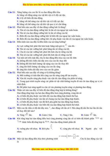 phương truyền sóng dao động vuông pha nhau là (với ) A. B. C. . D. . Câu 6: