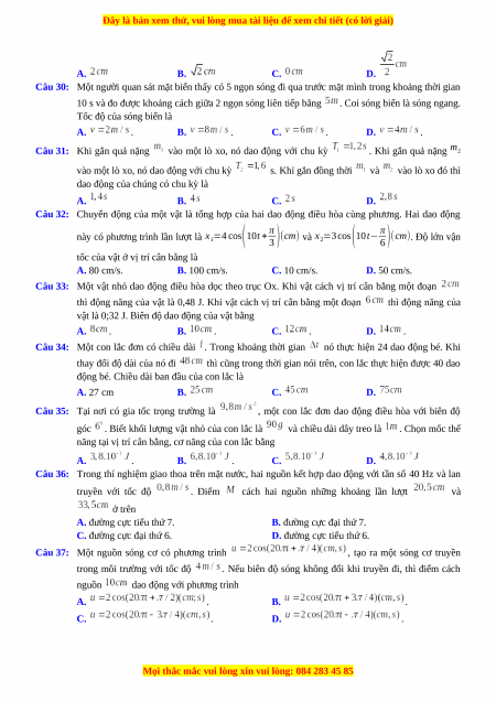 Câu 30: Một người quan sát mặt biển thấy có 5 ngọn sóng đi qua trước mặt mình trong khoảng thời gian