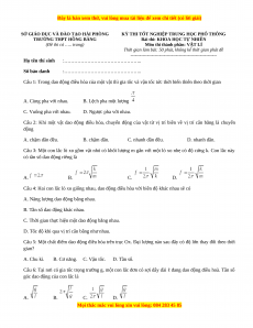Câu 1: Trong dao động điều hòa của một vật thì gia tốc và vận tốc tức thời biến thiên theo thời gian A. Cùng pha với nhau. B. Lệch pha một lượng C. Vuông pha với nhau. D. Ngược pha với nhau.