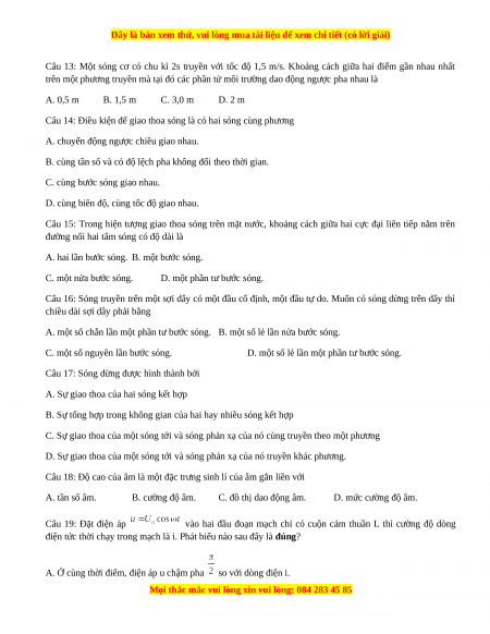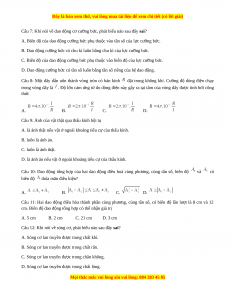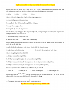 Câu 13: Một sóng cơ có chu kì 2s truyền với tốc độ 1,5 m/s. Khoảng cách giữa hai điểm gần nhau nhất