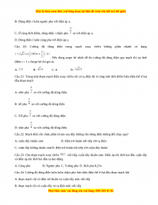 Câu 20: Cường độ dòng điện trong mạch xoay chiều không phân nhánh có dạng