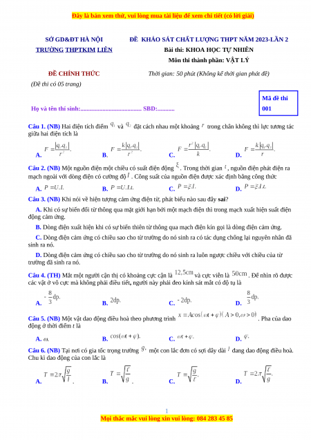 ĐỀ KHẢO SÁT CHẤT LƯỢNG THPT NĂM 2023-LẦN 2 TRƯỜNG THPTKIM LIÊN