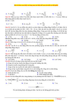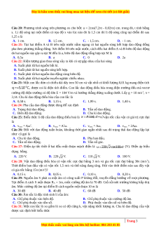 Câu 36: Con lắc lò xo dao đ ng ộ đi u ề hòa theo phư ng ơ ngang v i ớ biên độ A li độ c a ủ v t ậ khi thế năng bằng đ ng nă ộ ng là A A A. A 2 A x B. x C. x D. 2 x 2 4 2 4 Câu 37: M t ộ khung dây d n ẫ hình chữ nh t ậ có kích thư c ớ 3 (cm) x 4 (cm) đư c ợ đ t ặ trong từ trư ng ờ đều cảm ng