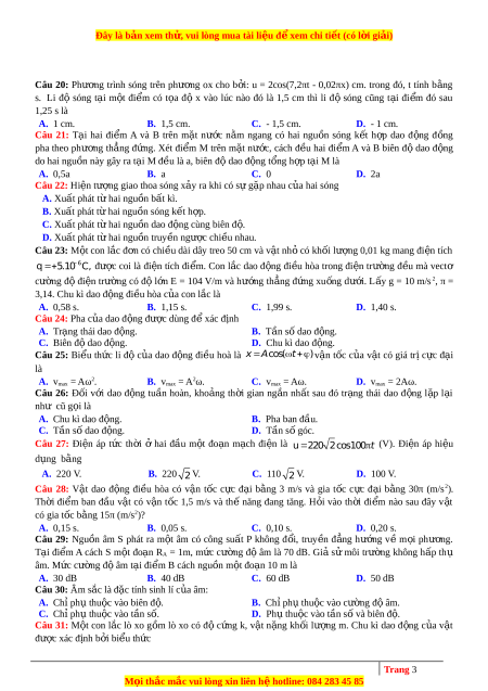 Đây là bản xem th , vu ử i lòng mua tài li u ệ đ xe ể m chi ti t ế (có l i ờ gi i ả ) Câu 20: Phư ng ơ trình sóng trên phư ng ơ ox cho b i