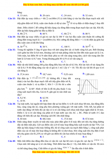 Câu 33: Đặt điện áp xoay chiều u = 60