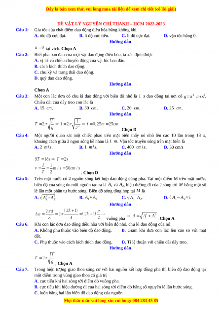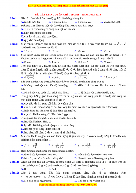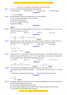ĐỀ VẬT LÝ NGUYỄN CHÍ THANH – HCM 2022-2023 Câu 1: