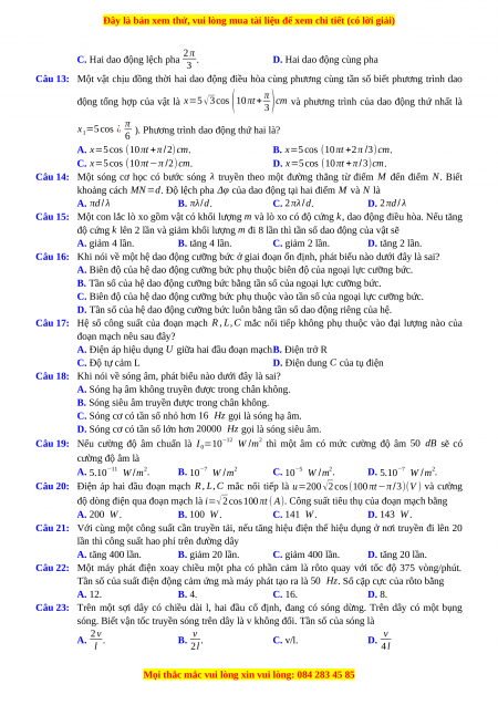 Câu 12: Cho 2 dao động điều hòa cùng phương, cùng tần số có phương trình x cos cos 1= A1