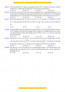 Câu 38: Trong thí nghiệm giao thoa sóng nước, hai nguồn kết hợp