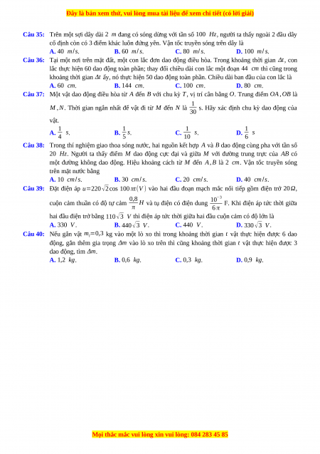 D. cực đại khi hai sóng tới điểm đó cùng pha. Câu 8:
