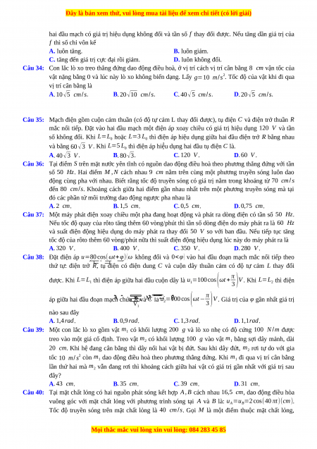 C. l=(2 k+1) với k với k 4 f =0,1,2 … D. l= f =1,2 … π Câu 5: