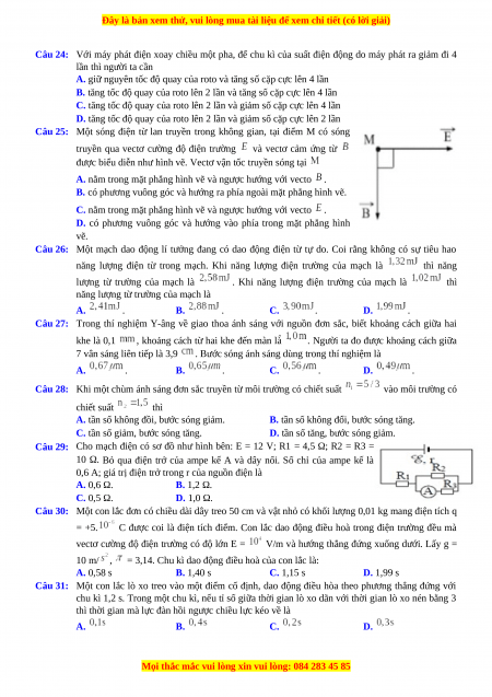 Câu 25: Một sóng điện từ lan truyền trong không gian, tại điểm M có sóng