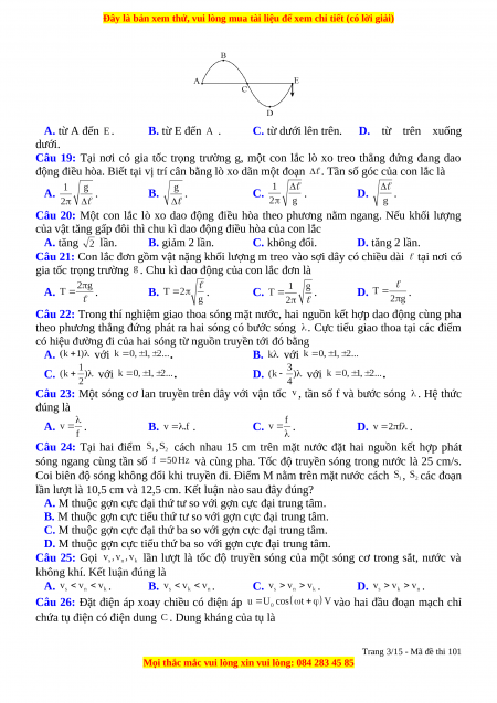 Câu 23: Một sóng cơ lan truyền trên dây với vận tốc , tần số f và bước sóng . Hệ thức