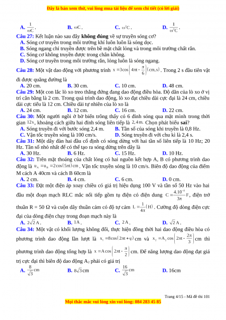 Thời gian làm bài: 50 phút không kể thời gian phát (Đề có 04 trang) đề Mã đề: 101