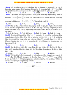 Câu 1: Đặt điện áp xoay chiều vào hai đầu đoạn mạch có R, L, C mắc nối tiếp. Biết cuộn