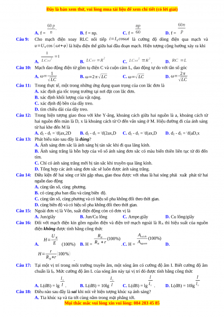 A. f = B. f = np. C. f = D. f = Câu 9: