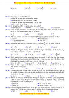Câu 25: Hệ số công suất trong mạch điện xoay chiều gồm R , L, C mắc nối tiếp với ZL=ZC Z A. phụ thuộc R B. bằng 0