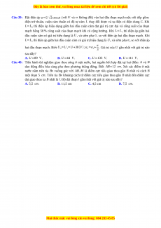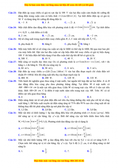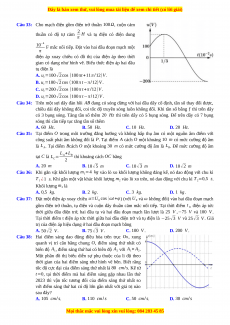 Câu 23: Đặt điện áp xoay chiều có giá trị cực đại là 100 V vào hai đầu cuộn cảm thuần thì cường độ