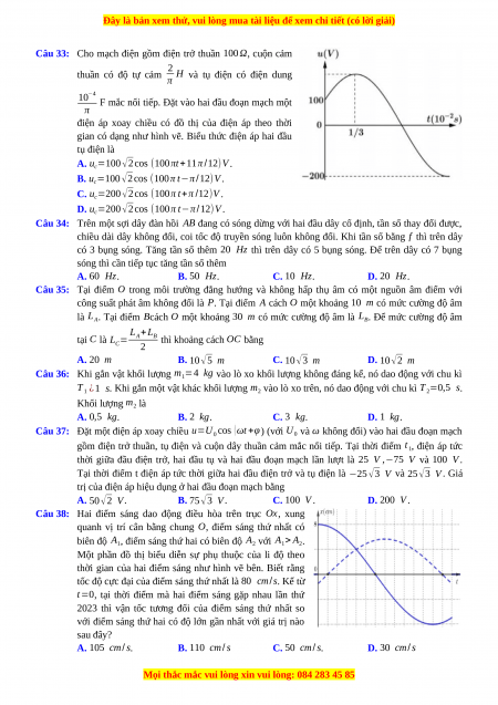 Câu 38: Hai điểm sáng dao động điều hòa trên trục