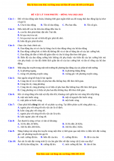 Câu 22: Điều kiện để có sóng dừng trên một sợi dây có 2 đầu cố định là chiều dài của sợi dây phải bằng