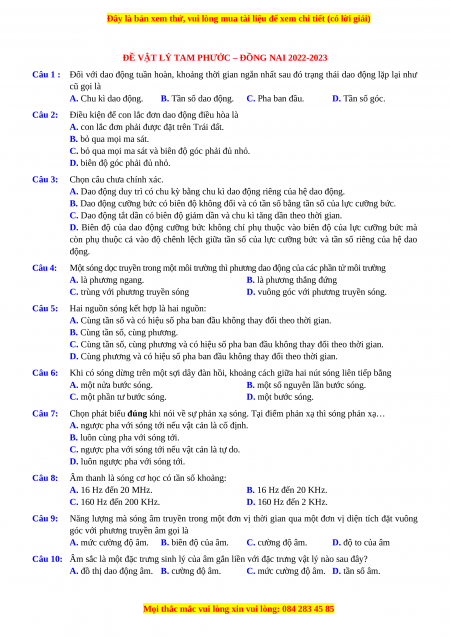 ĐỀ VẬT LÝ TAM PHƯỚC – ĐỒNG NAI 2022-2023