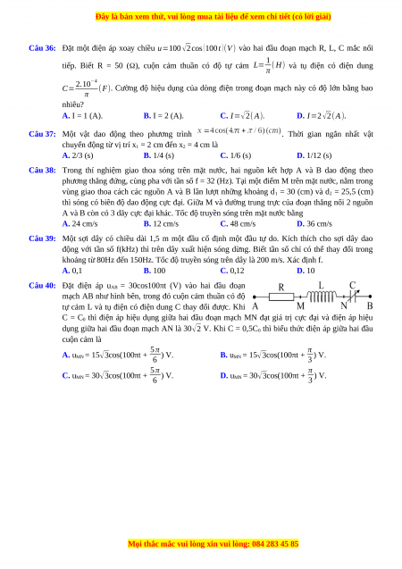 Câu 25: Đặt điện áp xoay chiều có giá trị hiệu dụng là 40 V vào hai đầu đoạn mạch không phân nhánh