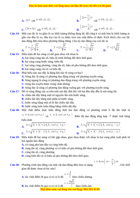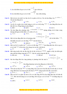 Câu 13: Hai dao động điều hòa cùng phương, cùng tần số có pha ban đầu là và . Hai dao động cùng pha khi hiệu có giá trị bằng