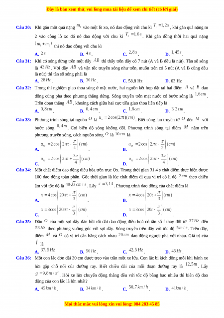 Câu 30: Khi gắn một quả nặng vào một lò xo, nó dao động với chu kì , khi gắn quả nặng m