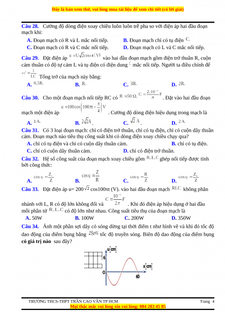 Câu 28. Cường độ dòng điện xoay chiều luôn luôn trễ pha so với điện áp hai đầu đoạn mạch khi: