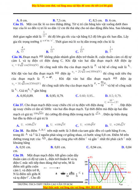 Câu 10. Một vật có khối lượng 200 g tham gia đồng thời hai dao động điều hòa cùng tần
