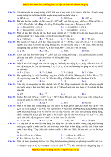 Câu 16: Điều kiện có sóng dừng trên dây chiều dài ℓ khi một đầu dây cố định và đầu còn lại tự do là A. ℓ = kλ. B. ℓ = kλ/2. C. ℓ = (2k + 1)λ/2. D. ℓ = (2k + 1)λ/4.