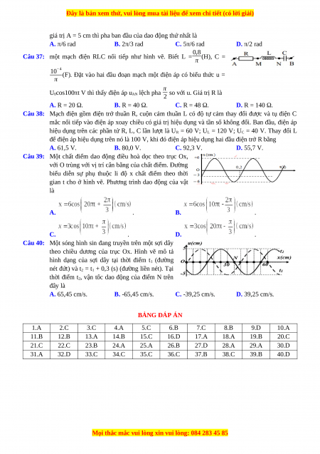 Câu 36: Một vật tham gia đồng thời hai dao động điều hòa cùng phương, có phương trình lần lượt là x