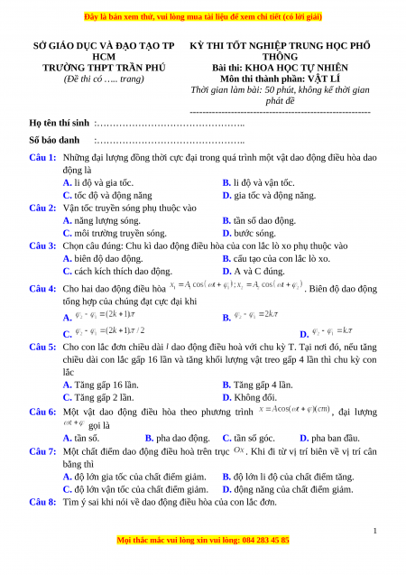 Bài thi: KHOA HỌC TỰ NHIÊN