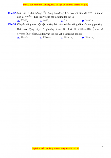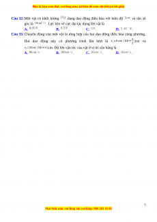 Câu 33: Chuyển động của một vật là tổng hợp của hai dao động điều hòa cùng phương.