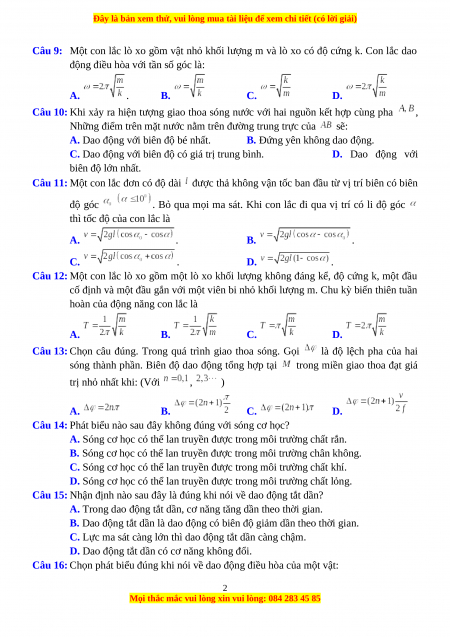 Câu 21: Điều kiện để hai sóng cơ khi gặp nhau, giao thoa được với nhau là hai sóng phải