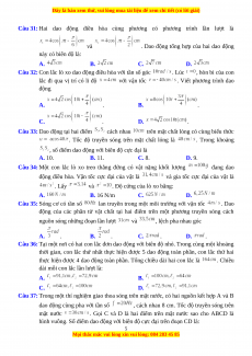 Câu 33: Dao động tại hai điểm cách nhau trên mặt chất lỏng có cùng biểu thức