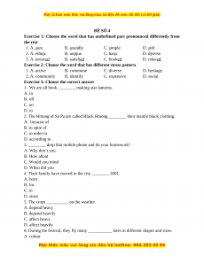 Exercise 1: Choose the word that has underlined part pronounced differently from the rest 1. A. sure B. s oundly C. s imple D. s tilt 2. A. ethnic B. unique C. basic D. diverse 3. A. terraced B. satisfied C. hooked D. relaxed