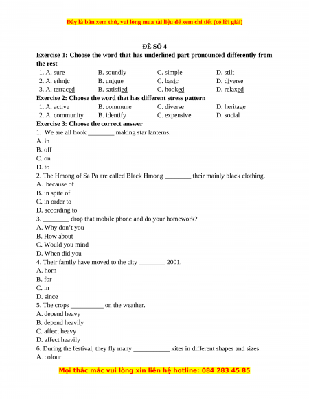 Đây là bản xem thử, vui lòng mua tài liệu để xem chi tiết (có lời giải)