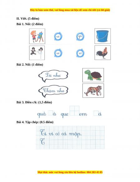II. Viết. (5 điểm)