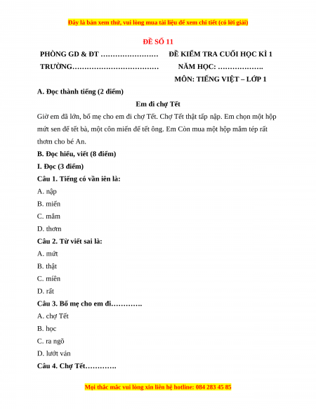 A. Đọc thành tiếng (2 điểm) Em đi chợ Tết