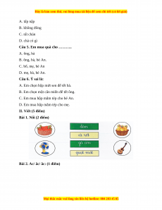 Câu 5. Em mua quà cho ……….. B. ông, bà, bé An. Câu 6. Ý sai là: