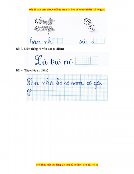 Bài 3. Điền tiếng có vần ua: (1 điểm)