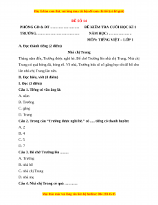 Đề thi Tiếng Việt lớp 1 Học kì 1 Cánh diều (Đề 14)