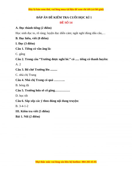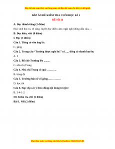 ĐÁP ÁN ĐỀ KIỂM TRA CUỐI HỌC KÌ 1 ĐỀ SỐ 14