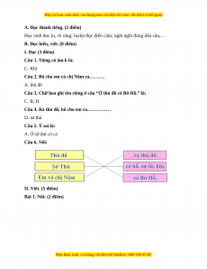 B. Đọc hiểu, viết. (8 điểm)