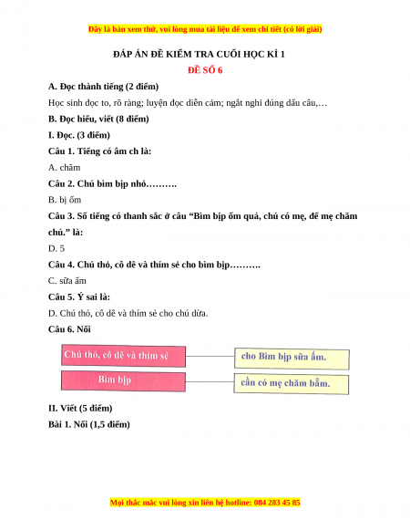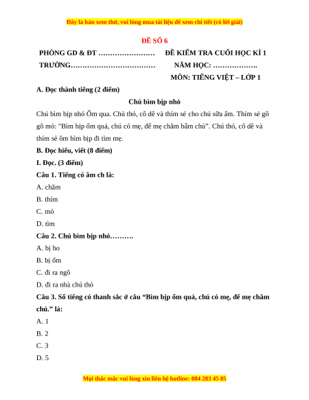 B. Đọc hiểu, viết (8 điểm) I. Đọc. (3 điểm)