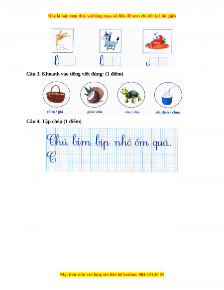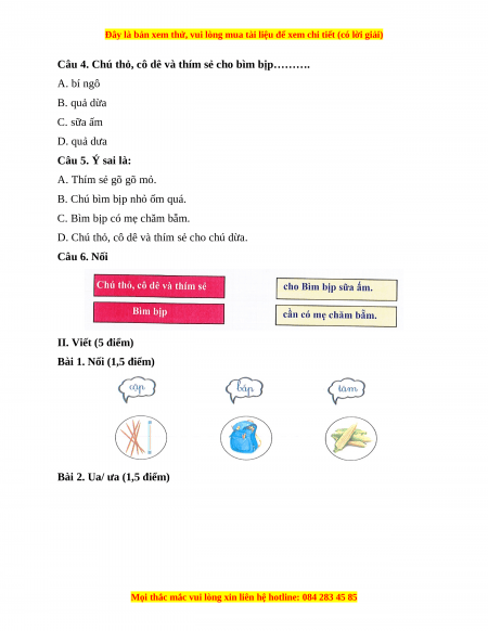 D. Chú thỏ, cô dê và thím sẻ cho chú dừa. Câu 6. Nối II. Viết (5 điểm)
